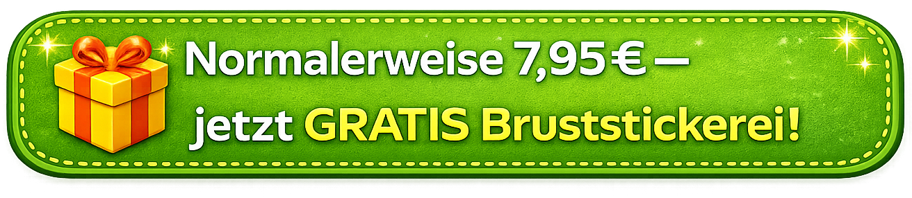 Dieses Angebot gilt für eine begrenzte Anzahl an Bademänteln. Wählen Sie einen teilnehmenden Bademantel und geben Sie die gewünschte Bruststickerei an. Sie erhalten die Bruststickerei dann von uns – nur für kurze Zeit!